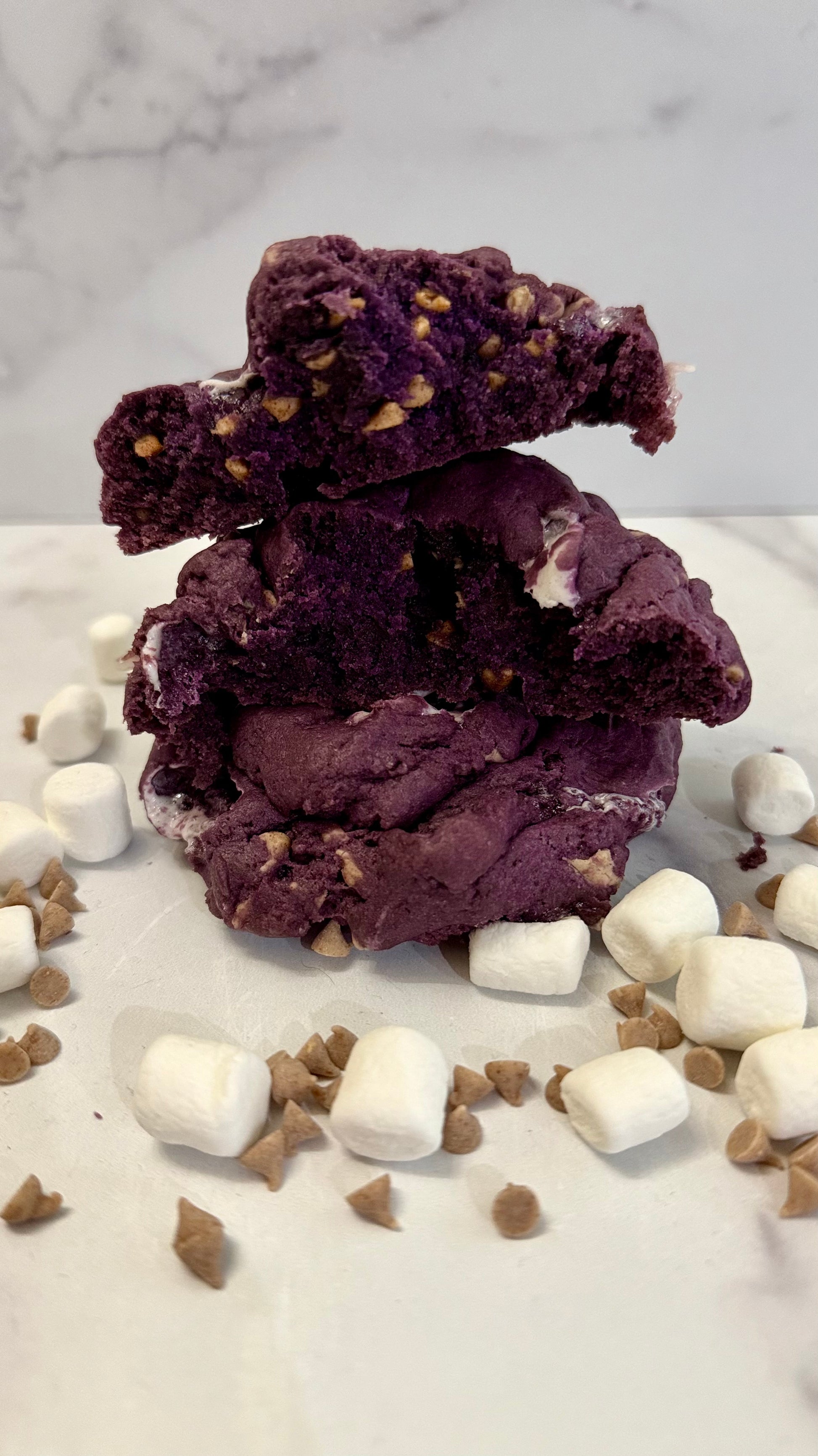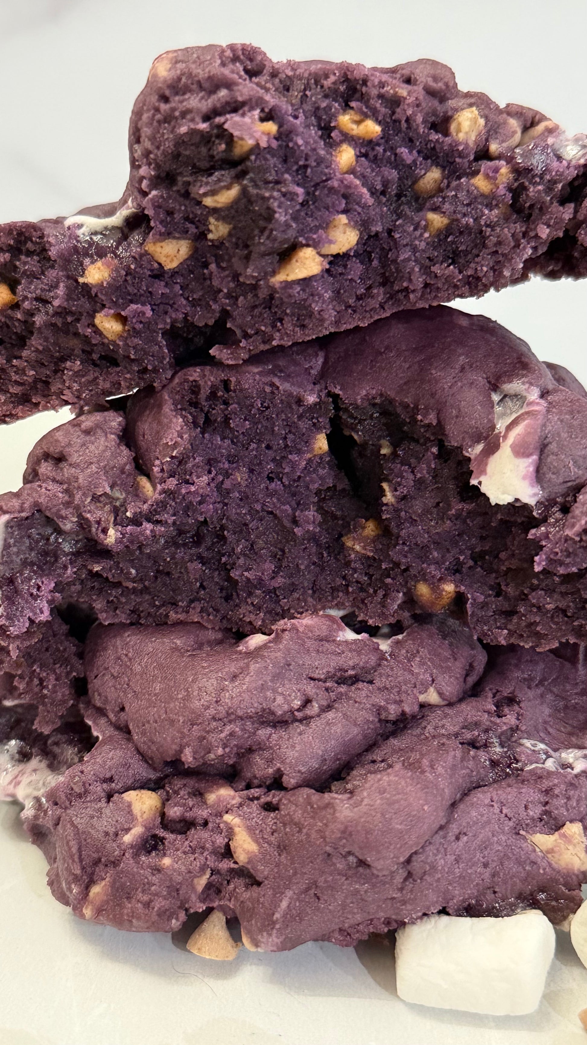 A Thanksgiving classic, reimagined OCD Cookie Co style. This rich, purple showstopper combines creamy ube and roasted sweet yam for the ultimate mash-up of cozy and exotic. Soft, buttery, and nostalgic — it’s everything you love about sweet yam casserole, wrapped up in one decadent cookie.